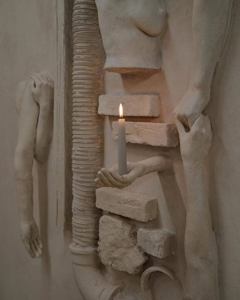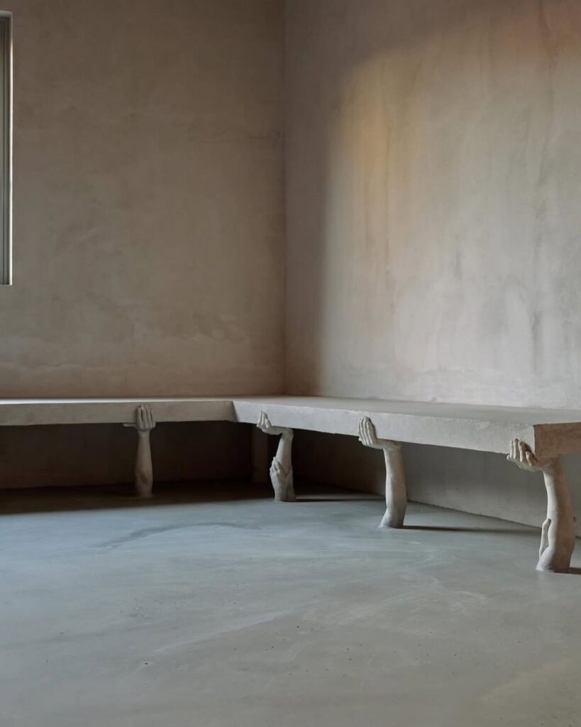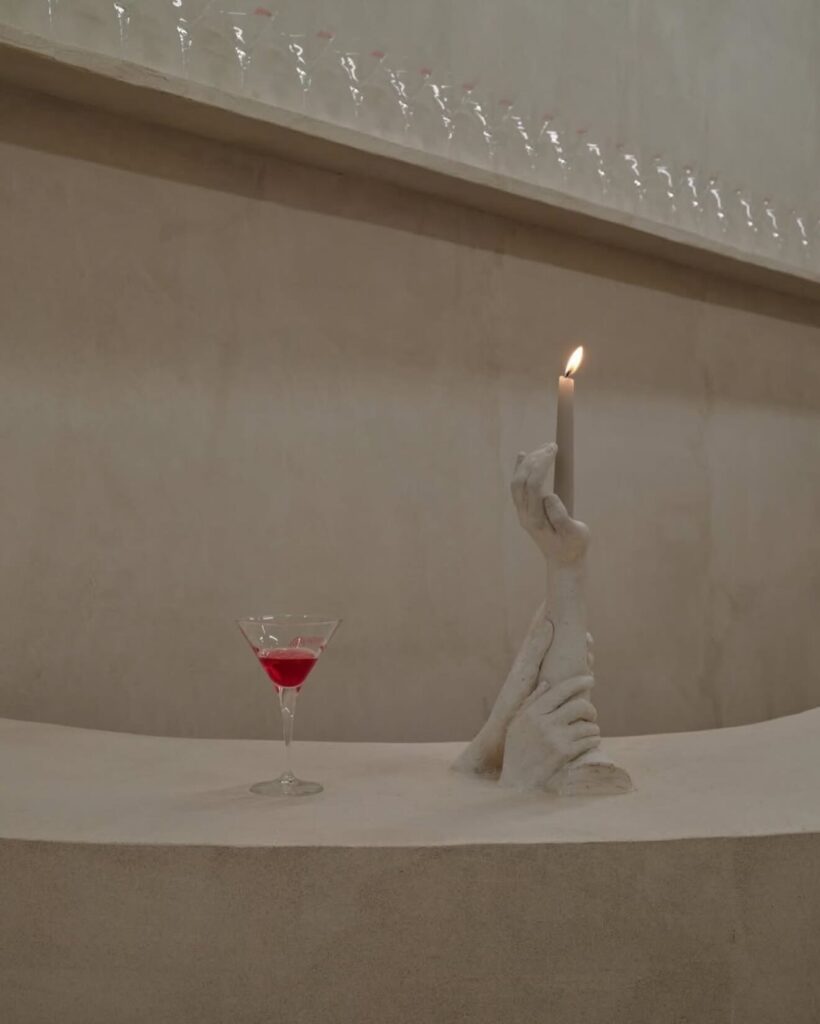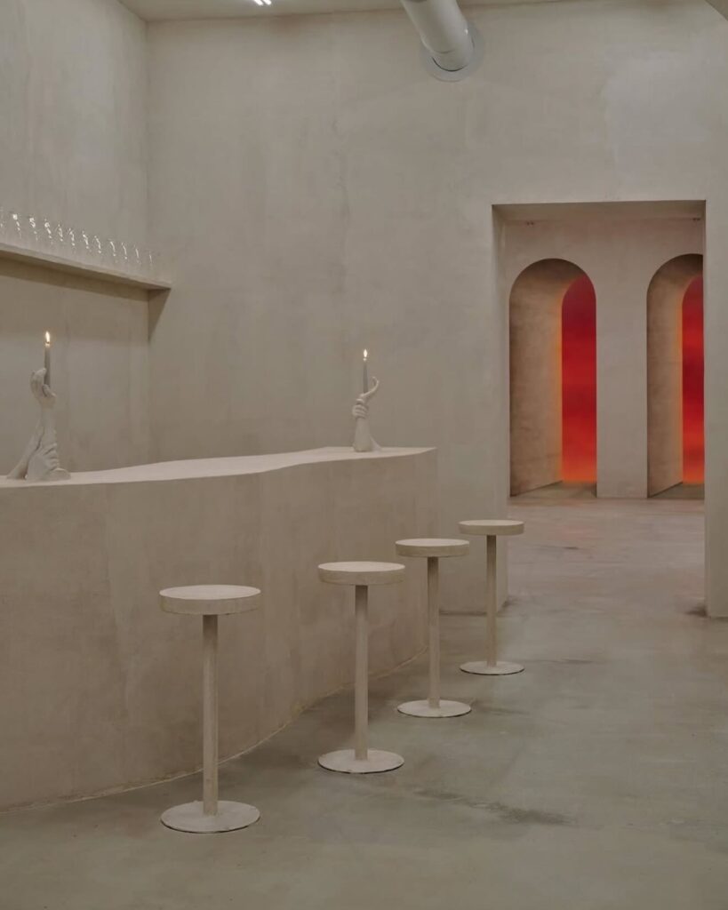Destined to be a short lived experience, Far Bar is described as a “work of art you can grab a drink in” and it’s unlike anything you’ve ever seen. Designed as the ruins of the future, hands, legs and all types of body parts making up the structure of furniture and lighting coming up from hell or descending from heaven one only knows, all clad in plaster white except for the orange skies coming from a few of the arches.